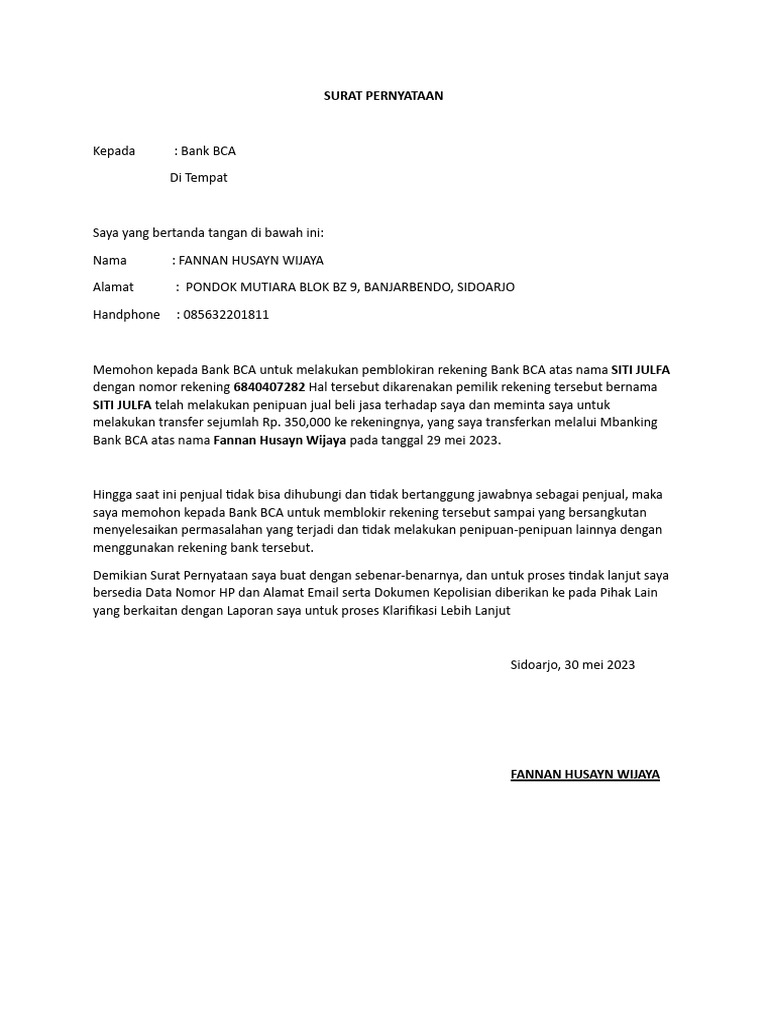 Salah satu hal yang mencurigakan adalah transfer investasi yang dilakukan kliennya tidak dikirim ke rekening CV Sateman Indonesia, melainkan ke rekening pribadi Rully. Hal ini menjadi salah satu alasan pihak korban untuk menuntut tindakan hukum.