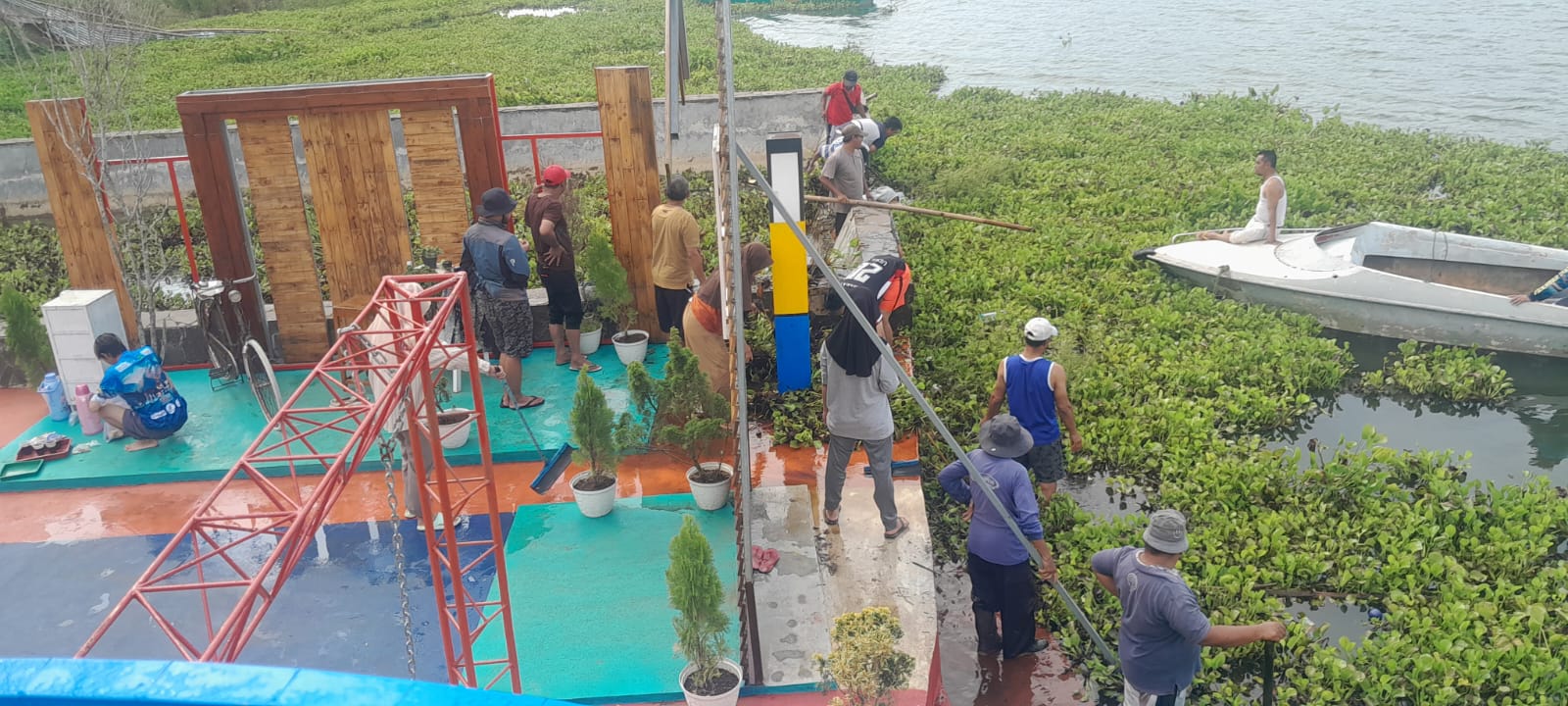 “Jika kondisi ini dibiarkan, maka akan menimbulkan dampak negatif terhadap ekosistem lingkungan perairan dan aktifitas pemanfaatan sumberdaya perairan lainnya. Seperti ketersediaan air bersih bagi masyarakat, baik untuk usaha budidaya perikanan, penangkapan ikan, jasa pariwisata dan usaha pemanfaatan sumber daya air lainnya. Tanaman liar Eceng Gondok ini merupakan salah satu spesies invasif berdasarkan peraturan menteri lingkungan hidup dan kehutanan republik indonesia,” ujar Denny.