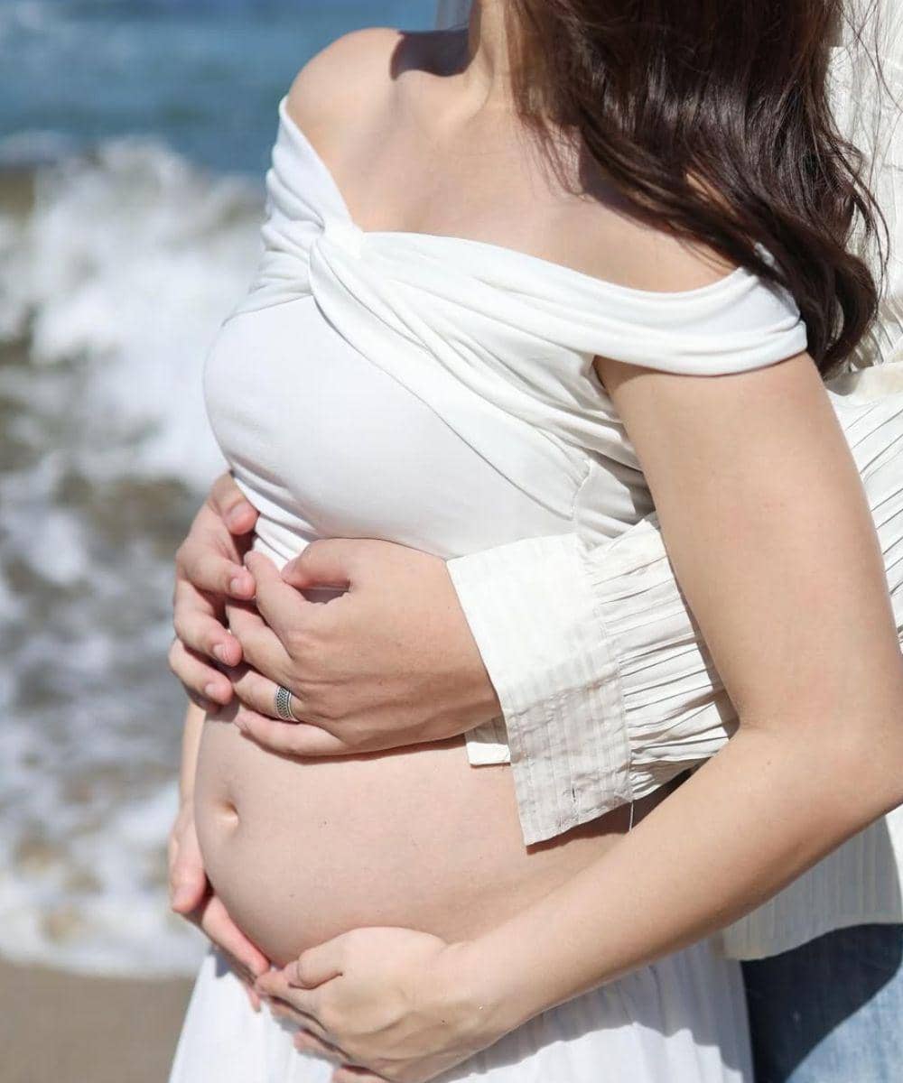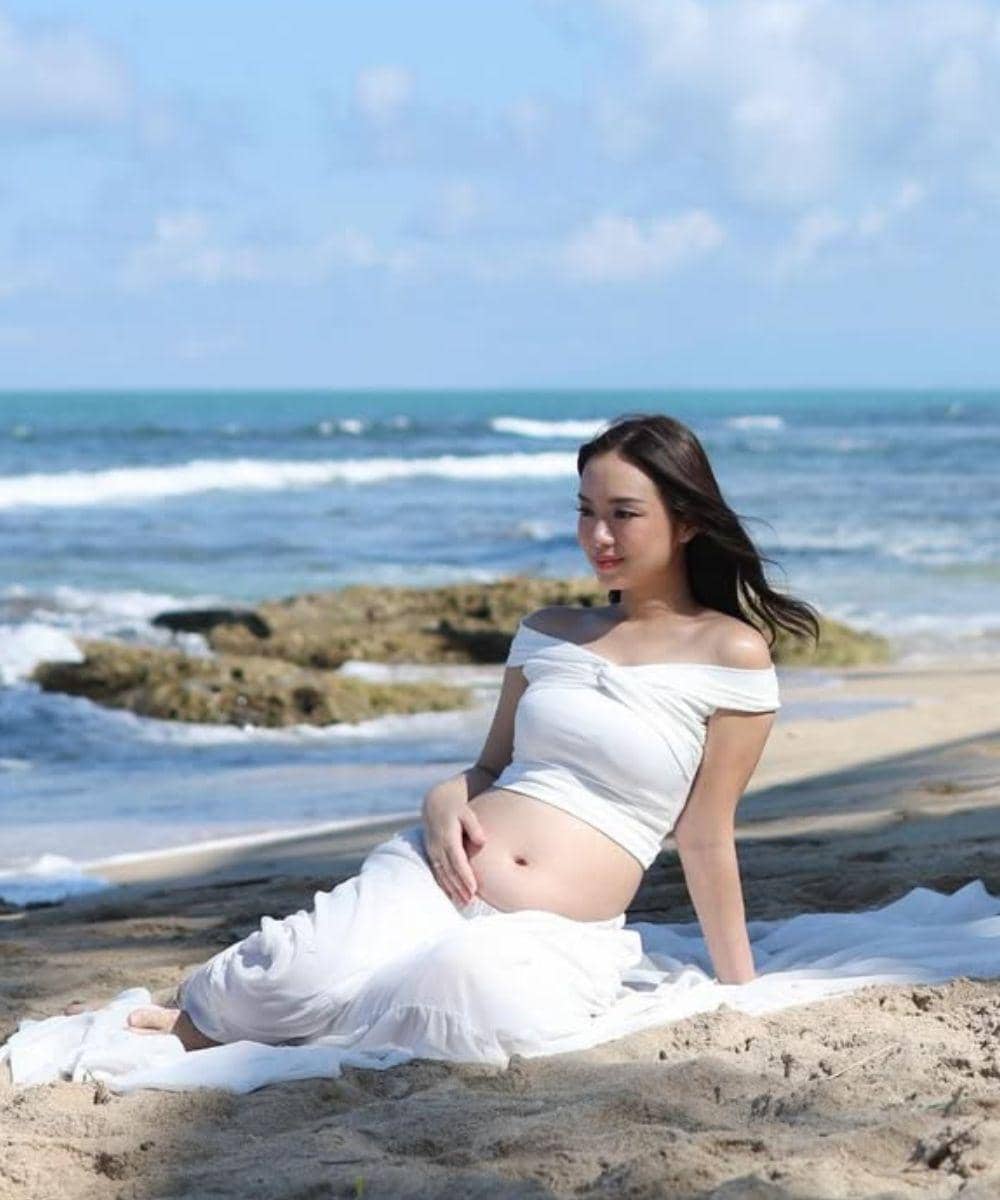 Pada salah satu unggahan foto maternity, Nabila tampak duduk santai di pesisir pantai. Ia menyandarkan satu tangan ke pasir untuk menopang tubuh, sementara tangan lainnya diletakkan lembut di atas perutnya, seolah menonjolkan baby bump. Pose ini memancarkan kebahagiaan seorang calon ibu yang tengah menikmati masa hamilnya.