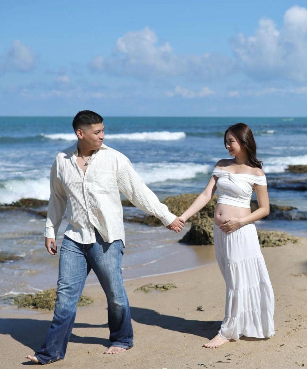 Nabila dan Verryal tampil kompak mengenakan busana berwarna putih saat sesi foto maternity. Nabila mengenakan crop top model off-shoulder berwarna putih yang memperlihatkan bagian perutnya, dipadukan dengan rok panjang putih yang longgar. Sementara itu, Verryal tampil santai dengan kemeja putih bertekstur dengan beberapa kancing atas terbuka, dipadukan dengan celana jeans biru. Dalam salah satu foto, keduanya terlihat berjalan di sepanjang garis pantai sambil bergandengan tangan. Verryal berada di depan sambil menoleh ke belakang ke arah Nabila, sementara Nabila mengikutinya dengan satu tangan memegang perut dan tangan lainnya digandeng oleh Verryal.
