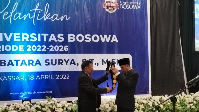 Tidak lama setelah dilantik kembali sebagai Rektor Unibos, Prof Batara Surya melantik sejumlah pejabat di lingkungan Unibos dan Politeknik Bosowa (Poltekbos) di Balai Sidang 45 Unibos, Jl Urip Sumoharjo, Makassar, Sulawesi Selatan, Senin (9/3/2026).