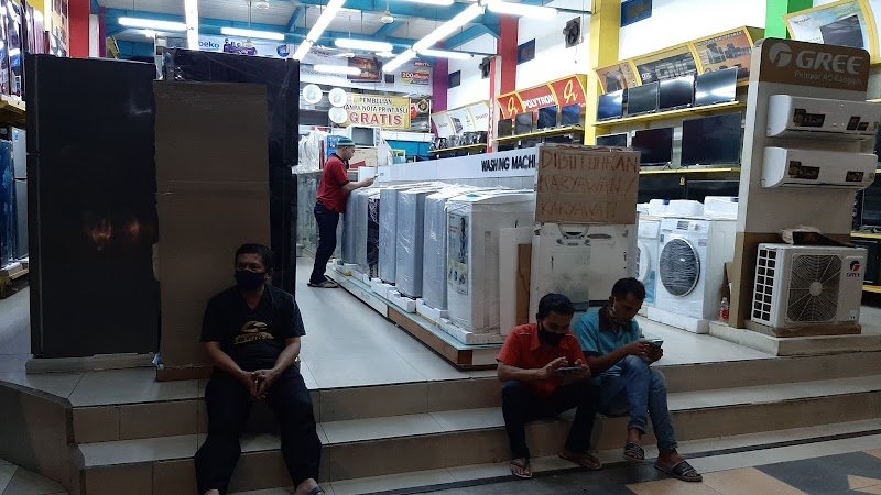 Toko ini menyediakan kulkas, mesin cuci, AC, dispenser, smart TV, home theater, dan lainnya, dengan promo menarik.