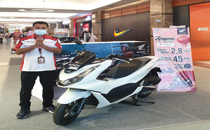 Pengunjung bisa membeli motor Honda dengan uang muka mulai dari Rp1,4 juta. Ini menjadi pilihan yang menarik bagi calon pembeli yang ingin memiliki motor premium tanpa harus mengeluarkan biaya besar. -