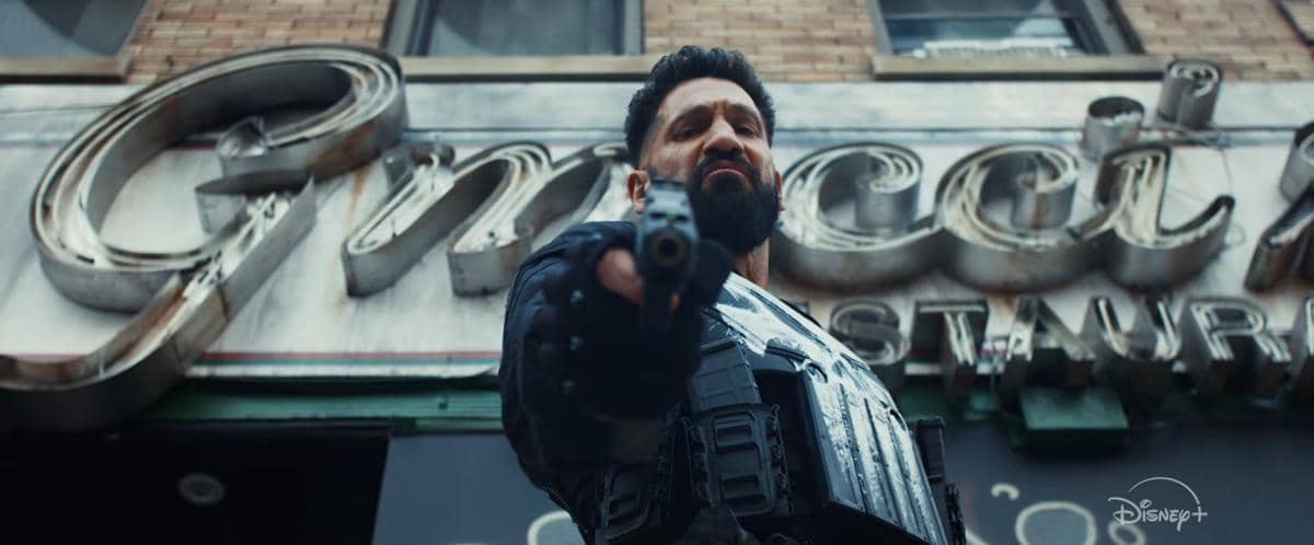 Dalam adegan penutup, Frank tampak mengarahkan pistol ke kamar, diambil dari angle bawah yang memperlihatkan ia sedang berdiri di depan restoran Ma Gnucci. Jika kamu belum familiar dengan nama ini, Ma Gnucci adalah salah satu villain yang paling berkesan bagi Frank Castle.