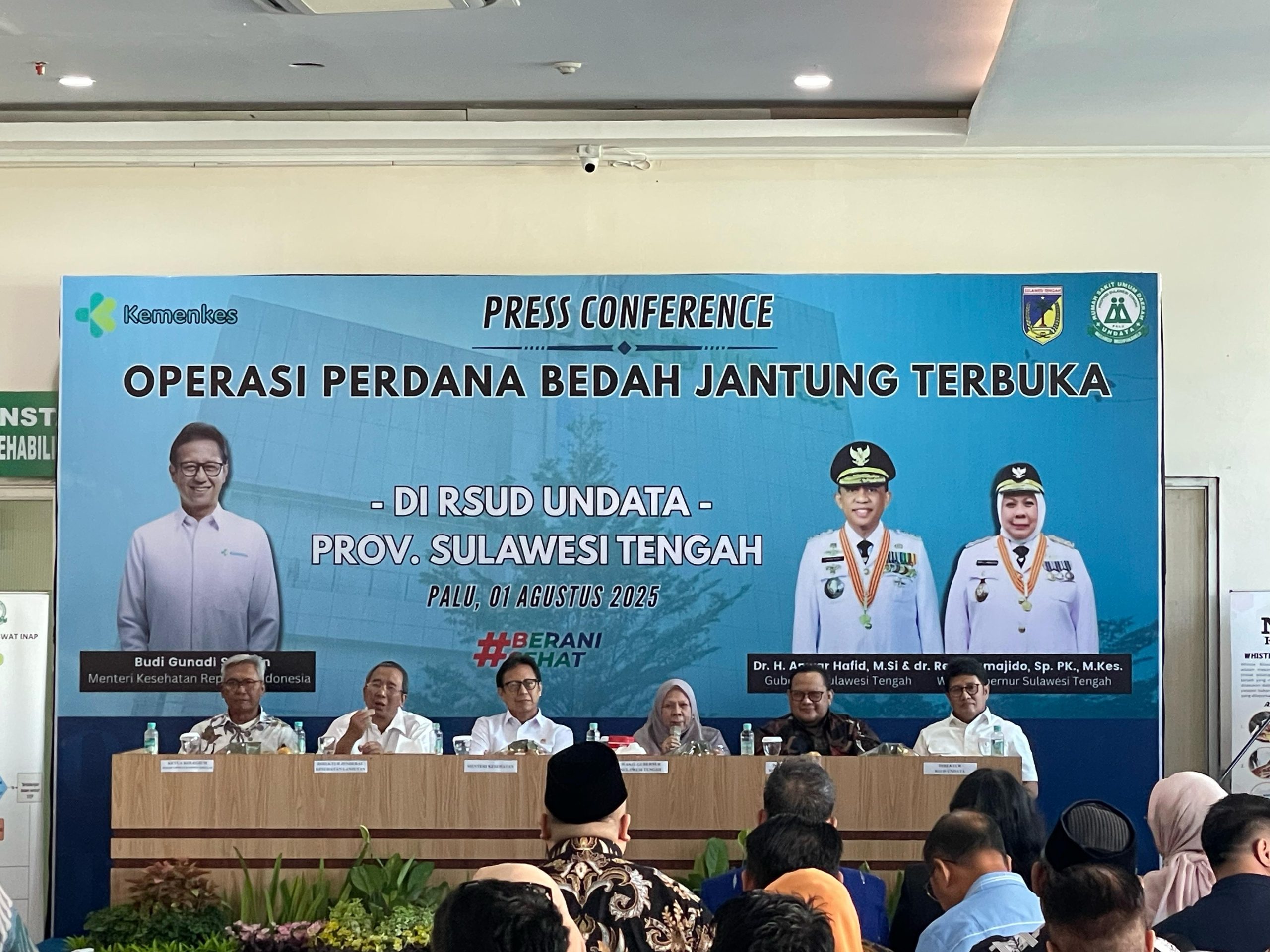“Semua warga yang memiliki KTP Sulawesi Tengah akan dilayani. Kalau ada yang tidak ditanggung BPJS, itu menjadi kewenangan provinsi. Tidak boleh ada lagi masyarakat kita yang sakit tetapi tidak bisa berobat karena alasan biaya,” tegas Wakil Gubernur dalam sambutannya pada kegiatan Press Conference Bedah Jantung Terbuka Perdana, di RSUD Undata Palu, Jumat (1/8/2026).